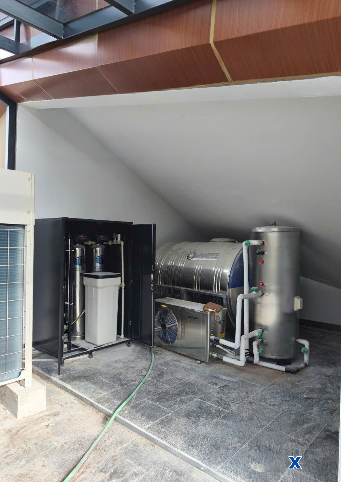 – Hệ thống bao gồm: Ống nước PPR (ống nóng/lạnh kết nối nội tuyến thiết bị)+ tủ điện, Dây điện + ống ghen kết nối/điều khiển thiết bị, Ống bảo ôn nội tuyến đường nước nóng. Chi phí vận chuyển đến công trình, vận chuyển máy lên vị trí và nhân công lắp đặt, vận hành.