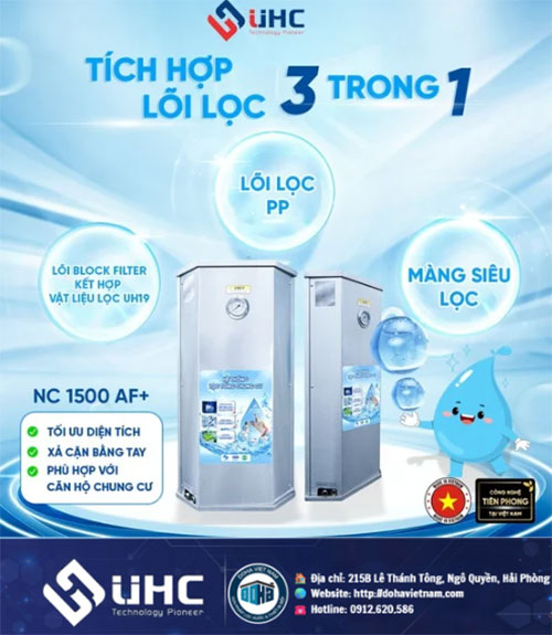 Thấu hiểu được nỗi trăn trở trên của những hộ dân sống tại các căn chung cư, Công ty TNHH Giải pháp Công nghệ UHC Việt Nam đã nghiên cứu và cho ra đời sản phẩm Hệ thống xử lý nước tổng AF nhằm cải thiện chất lượng nguồn nước sinh hoạt tại địa hình này, mang đến giải pháp giúp nâng cao chất lượng nước theo tiêu chuẩn QCVN 01-1/2018/BYT.