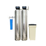 Lọc tổng 2 cột Inox 304 loại 1054 tích hợp than – cát và chức năng làm mềm nước, hàng Việt Nam bền bỉ. Hệ thống gồm van tự động hoặc van tay, lọc chặn 20 inch, thùng muối và khung inox chắc chắn. Giúp loại bỏ tạp chất, rong rêu, chất hữu cơ, xử lý mùi, clo dư, thuốc trừ sâu, đồng thời khử kim loại nặng như sắt, mangan, asen, mang lại nguồn nước sạch cho sinh hoạt.