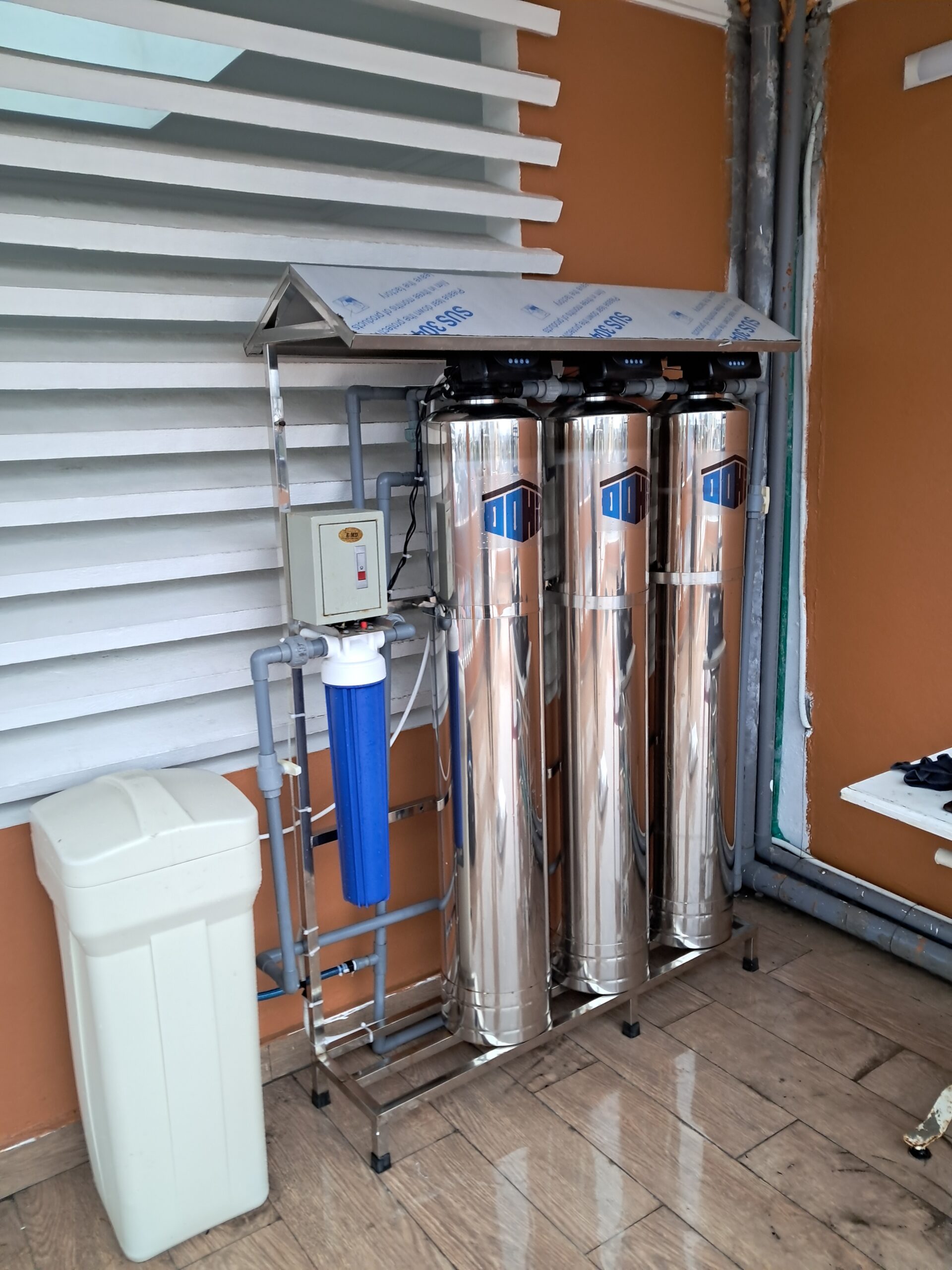 Lọc tổng 3 cột Inox 304 loại 1054 – hàng Việt Nam, kết cấu chắc chắn, độ bền cao. Hệ thống gồm bộ lọc chặn 20 inch, thùng muối, van auto hoặc van tay, khung inox đồng bộ. Giúp loại bỏ tạp chất, rong rêu, chất hữu cơ, xử lý mùi, clo dư, thuốc trừ sâu, làm mềm nước và khử kim loại nặng như sắt, mangan, asen.