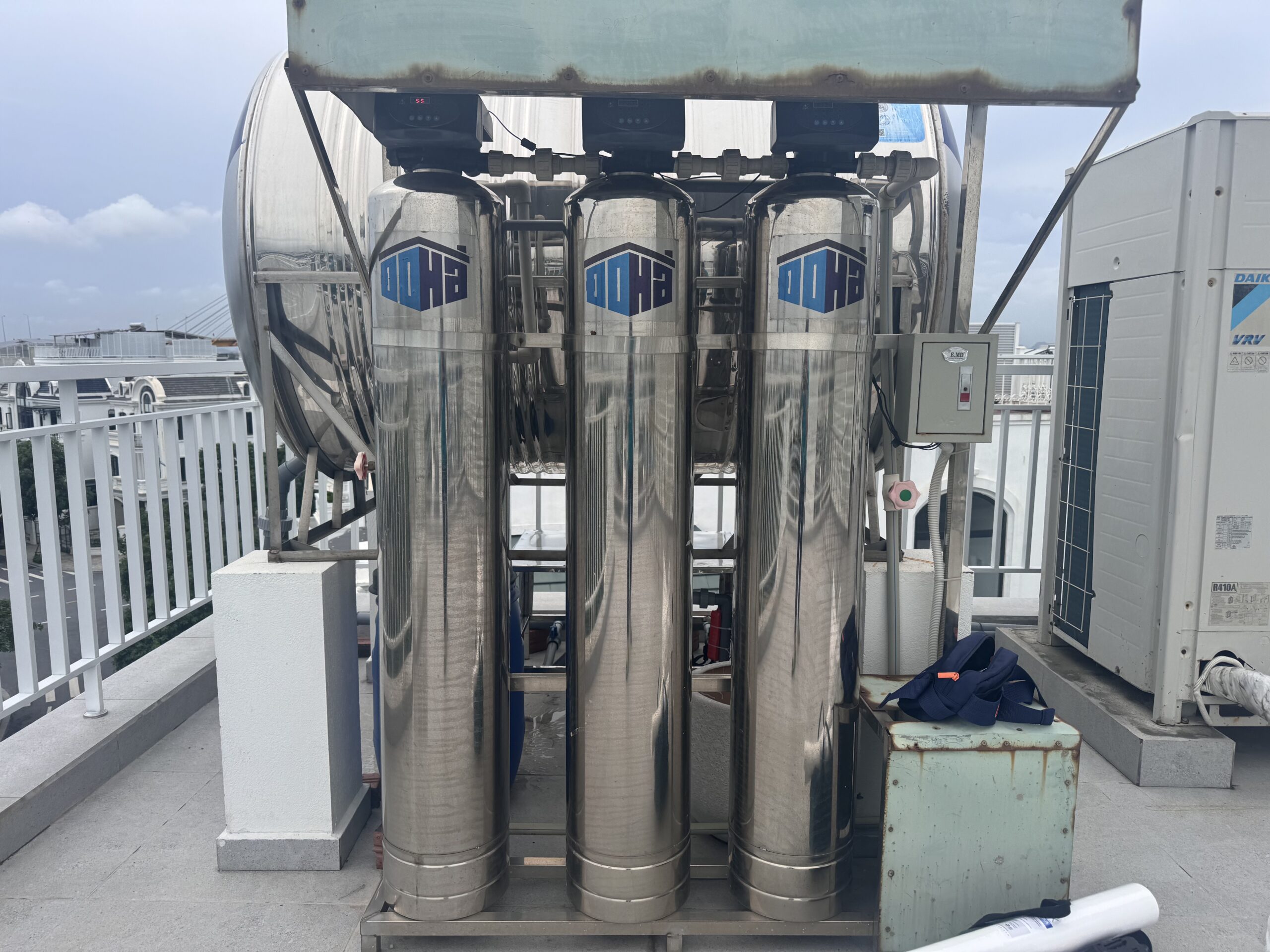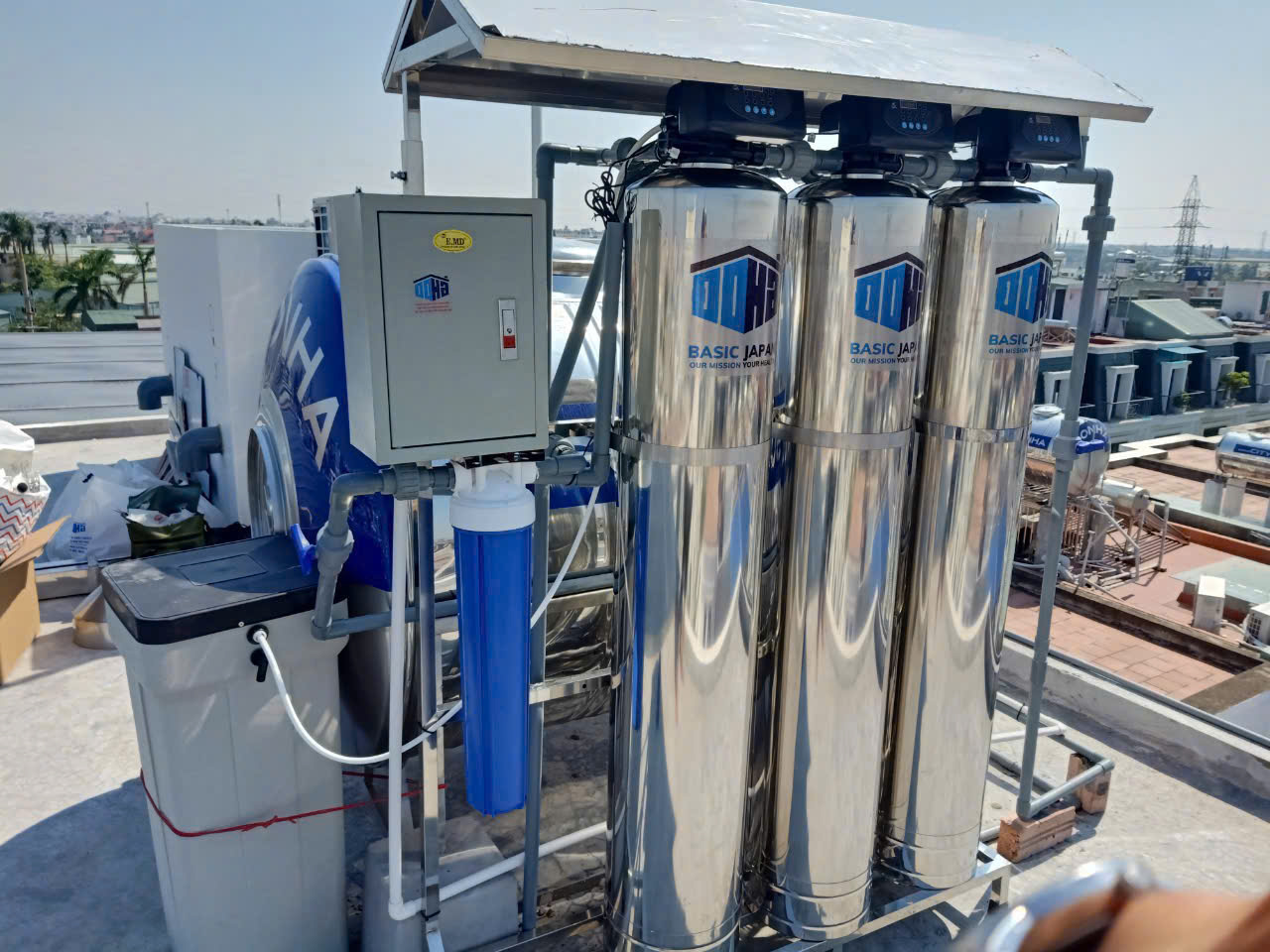 - Mái đình che bộ lọc: bảo vệ hệ thống khỏi nắng mưa, tăng độ bền và tuổi thọ thiết bị.