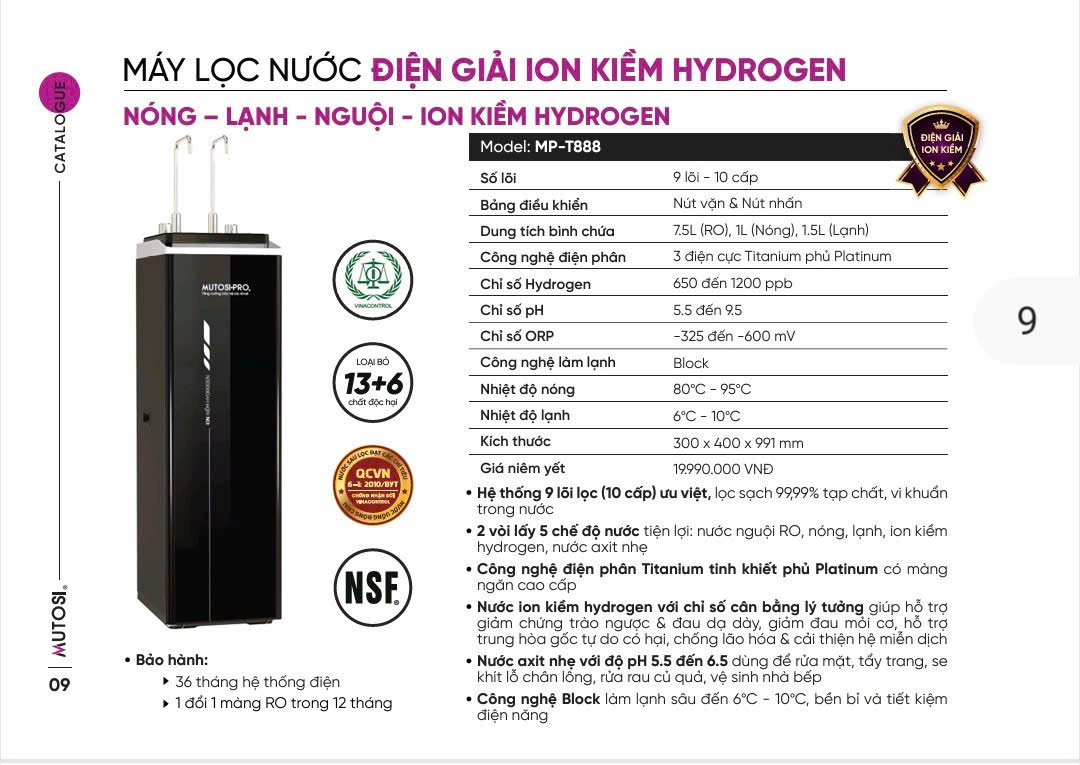 Máy lọc nước điện giải ion kiềm hydrogen Mutosi MP-T888