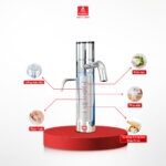 Sản phẩm được thiết kế âm bồn với phần vòi lọc ở trên bồn rửa và bình điện phân, bộ lọc sẽ được lắp dưới bồn rửa. Về thẩm mỹ tổng quan cho thấy với thiết kế này sẽ tối ưu được diện tích đồng thời giúp không gian bếp nhà mình sang trọng hơn.