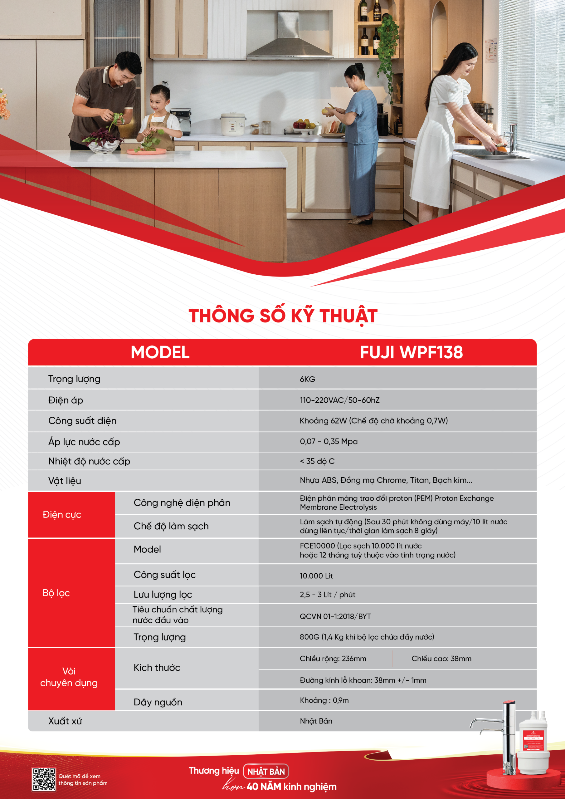 Máy lọc nước điện giải ion kiềm FUJI WPF138 được Fujiion chú trọng nghiên cứu và phát triển. Sản phẩm được tích hợp nhiều công năng, thiết kế lắp đặt dưới bồn rửa có bộ lọc FCE10000, công suất lọc 10000L…