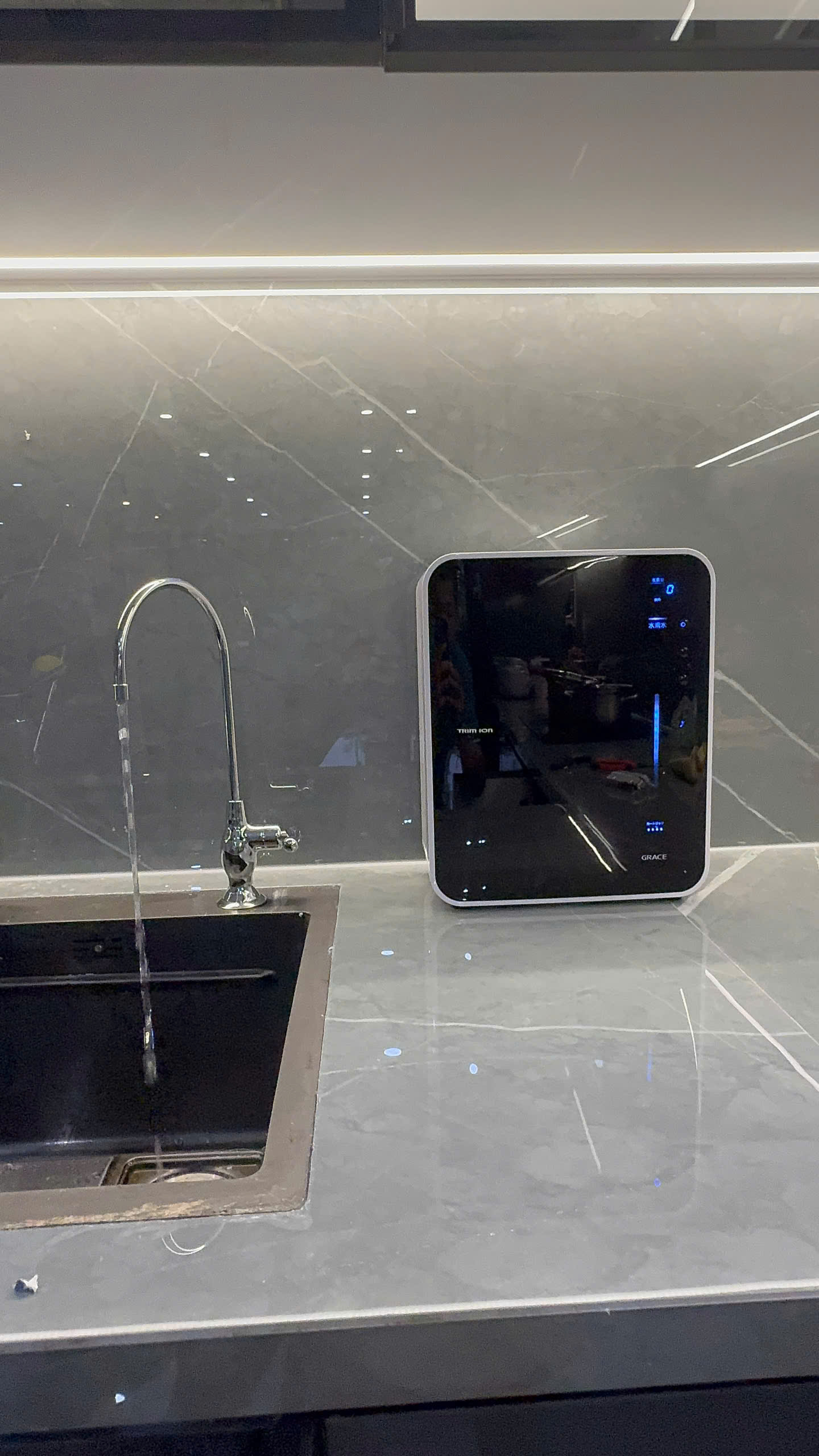 Nếu như máy điện giải ion kiềm Trim ion Hyper sở hữu thiết kế thanh lịch với màu trắng, máy lọc nước điện giải ion kiềm Trimion Gracia đẳng cấp với vòi kim loại sáng bóng thì model Trimion Grace ấn tượng với thiết kế màu đen mạnh mẽ, giúp không gian sống thêm sang trọng.