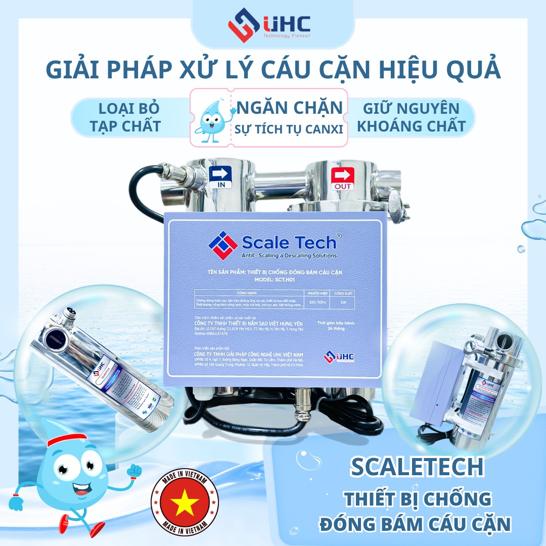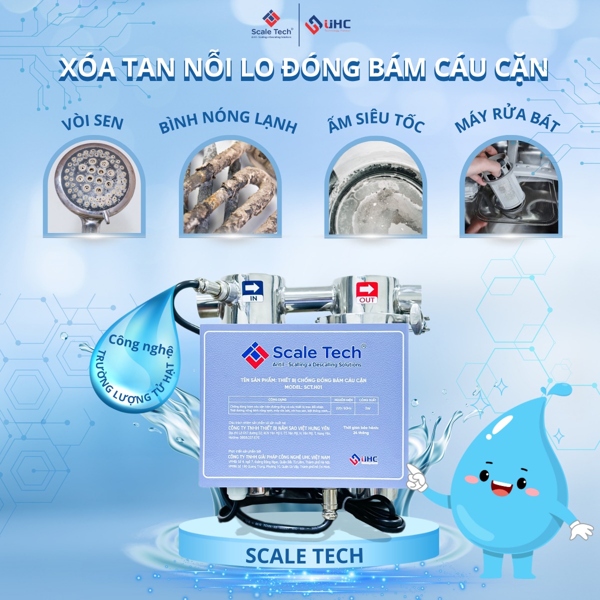 UHC Việt Nam đã nghiên cứu cho ra sản phẩm thiết bị chống đóng bám cáu cặn canxi Scaletech – Với công nghệ đặc biệt giúp duy trì hiệu suất hoạt động của hệ thống ống dẫn nước của các thiết bị trao đổi nhiệt như trên.